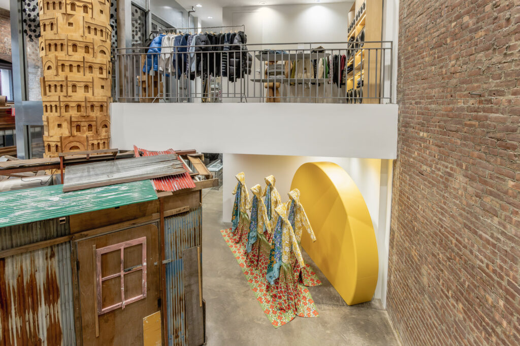 The installation marks the arrival of Craig Green’s Spring/Summer 2026 collection in store at DSM New York and Los Angeles. The psychedelic floral prints nod to The Beatles’ chromatic youth, an overarching reference that shaped the brand’s SS runway show.