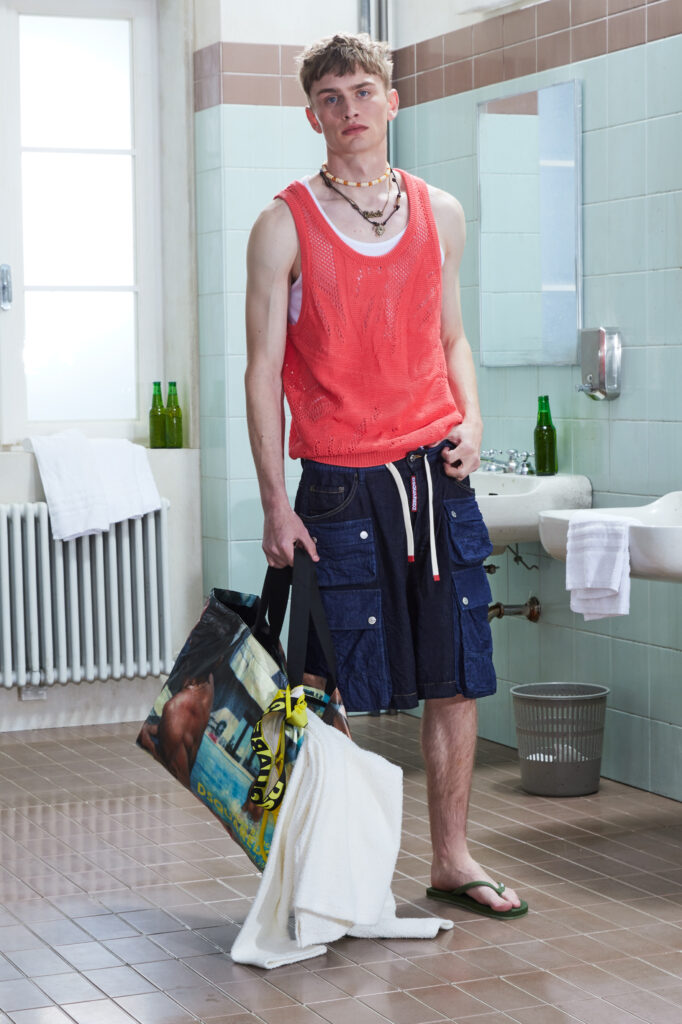 For accessories, trompe-l’oeil bags referencing printed media nod to the candid and occasionally provocative spirit of the original photographs. What ultimately distinguishes the garments is their treatment of Bianchi’s work as more than historical reference. Integrated into contemporary dress, the imagery underscores how ideas of community and self-expression continue to resonate.