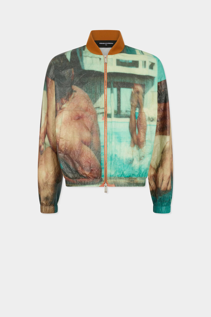 Dsquared2 translates this atmosphere into garments that integrate the imagery into the garments rather than reinterpret it, allowing the original work to remain intact within a contemporary wardrobe.