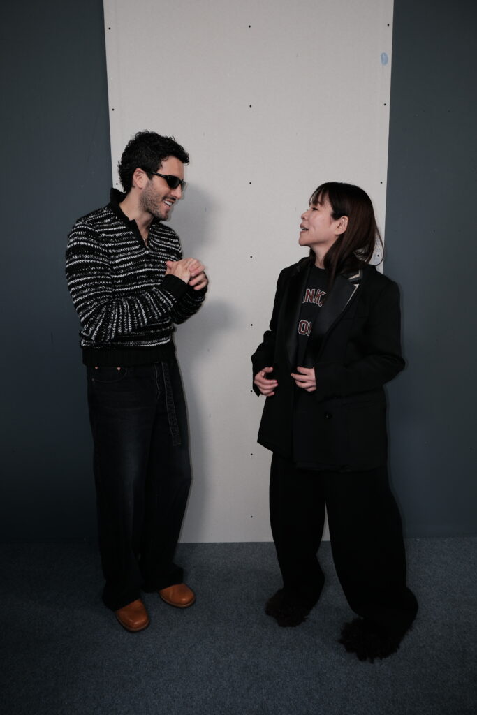 “Having a 30-second chat with Chitose Abe, Sacai’s creative director, after the show.”