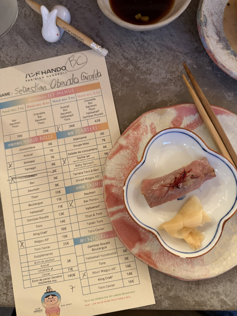 “Hand rolls for lunch. Oji for dinner. I love these restaurants that are small, intimate… candles everywhere. Great pre for what was the rest of a memorable last night in Paris FW/Homme Fall/Winter 26.”