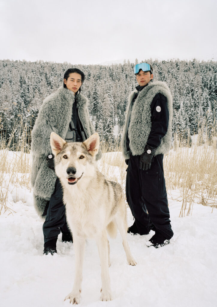 Furry sheepskin boots, shearling-suede handbags, and Armani Neve crest-adorned toques and gloves—the extensive range of snowhill accessories sets the tone for the collection’s refined alpine fashion. Further, Giorgio Armani Neve’s Winter 2025/26 expands with dogwear: pinstripe and velvet canine apparel and accessories drawn from the Giorgio Armani x Poldo Dog Couture collection.