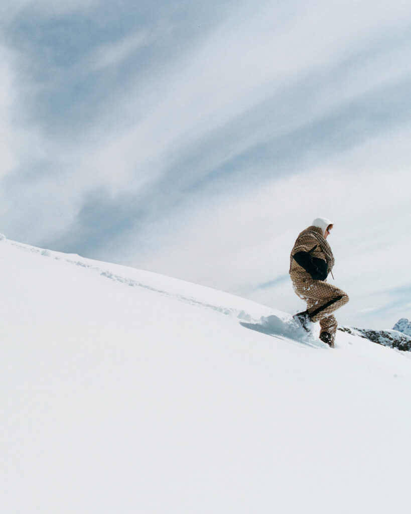 Photographed by Stef Mitchell and directed by Stillz, the campaign features Jannik against a white horizon. Styled by Sydney Rose Thomas, each look pairs quilted performance jackets, lightweight tailored technical trousers, and outerwear designed to move seamlessly with their environment. Merging form and function, Gucci Altitude reimagines alpine wear through refined performance design with breathable three-layer constructions, water-resistant finishes, and precision details made for movement.