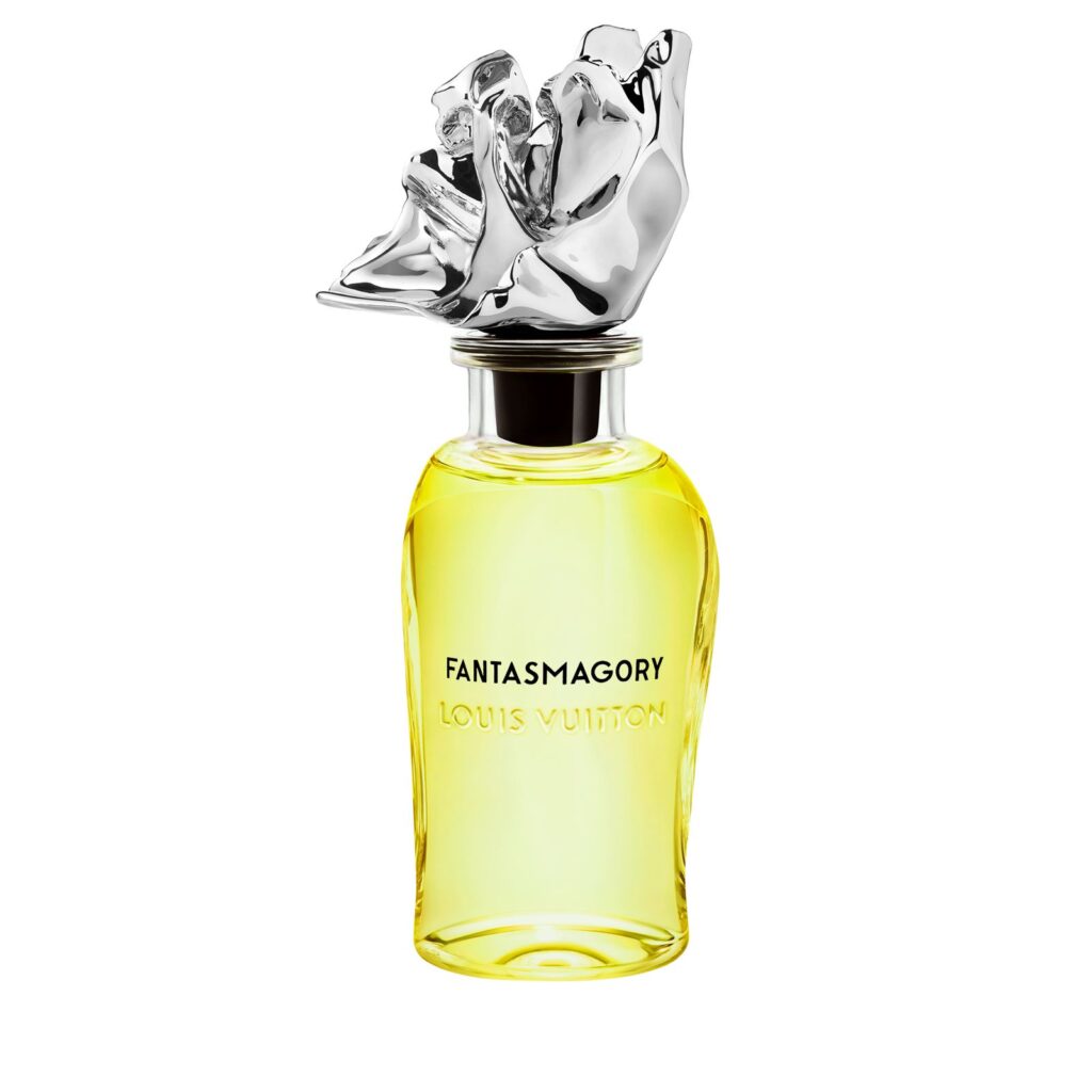 “With one of the eccentric bottles hitting the market this fall, Louis Vuitton’s Fantasmagoria raises the bar for gourmand scents with a vanilla-powered fragrance that fuses florals with leather. Within the vein of the house’s Maison’s Les Extraits Collection, the ultra-concentrated formula boosts the richness of vanilla with almond extract and ginger finishes off the experience that stems from the Frank Gehry-designed bottle.”