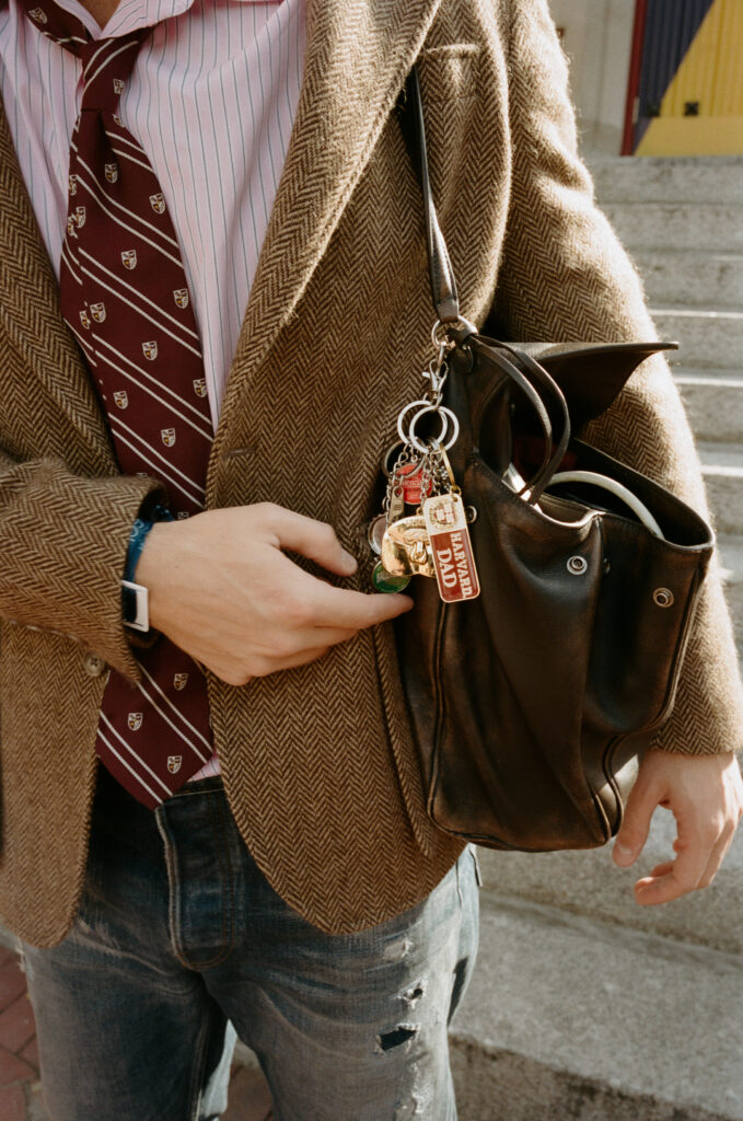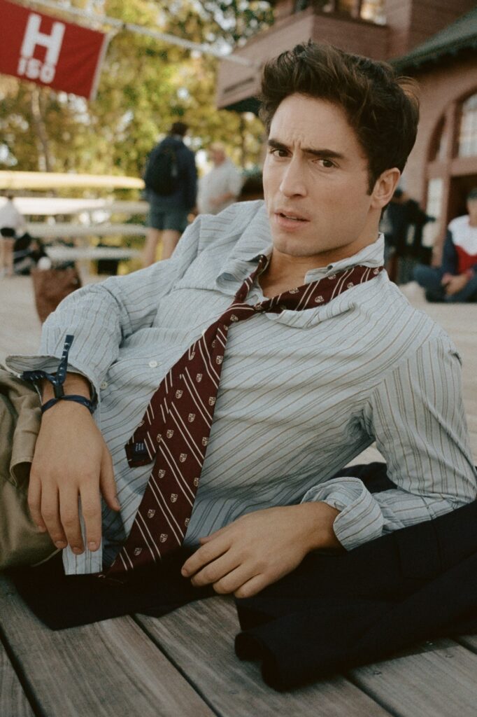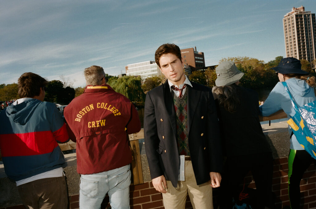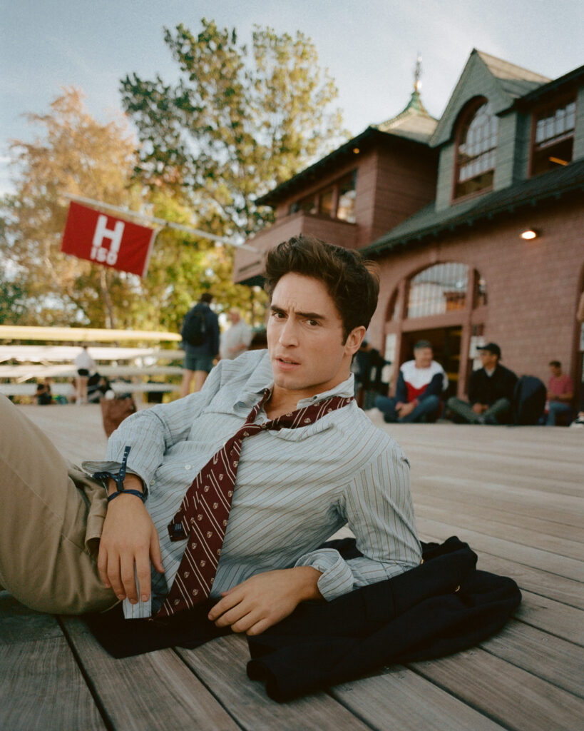And if you’re going to live out a Legally Blonde fantasy on the Harvard campus, why not dress the part? With stylist Jake Sammis, Skinner leaned all the way into Ivy League Americana, cycling through four Ralph Lauren looks—which is, you know, “a casual day on campus”—to full prep regalia for the Head of the Charles Regatta, that annual collision of rowers, fans, and aggressively preppy outerwear. “When you watch season two, you’ll understand a lot of the things I was observing while I was there.”