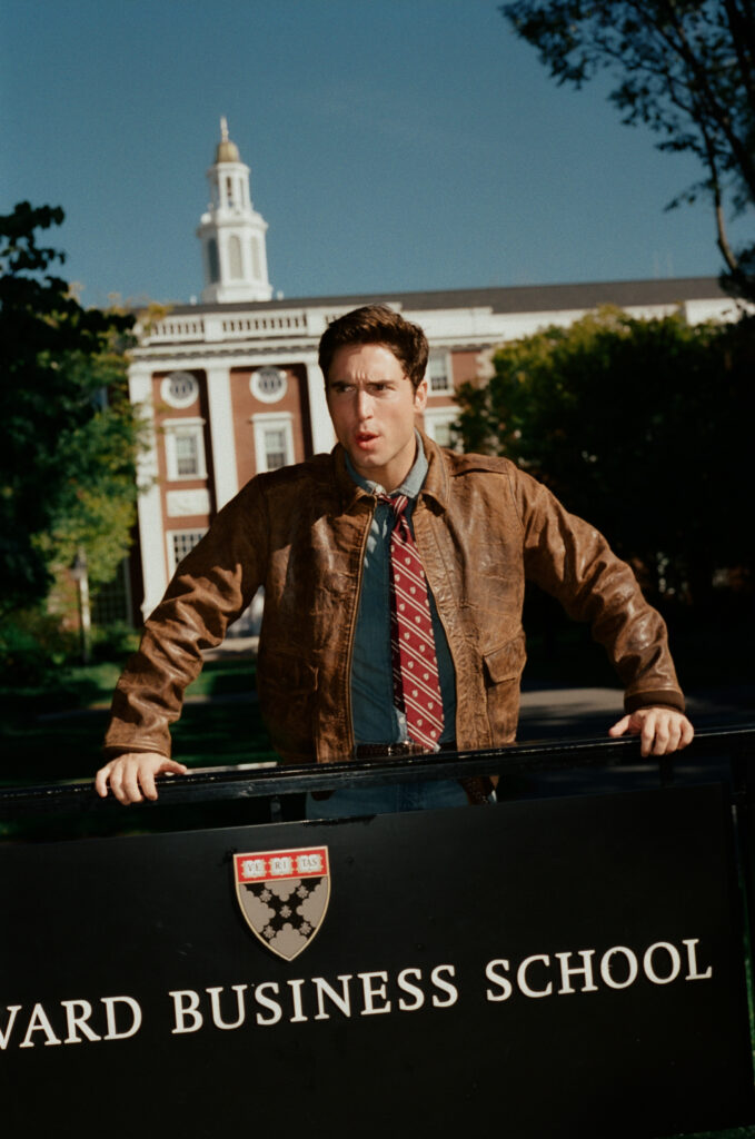 Harvard wasn’t part of Benito Skinner’s college experience, he actually went to Georgetown, but this fall he finally gave himself the campus tour he never got. The comedian and actor touched down in Cambridge at the invitation of the PRIDE leaders at Harvard Business School, where he spoke with students about his path from internet breakout to Hollywood multi-hyphenate—and creator of Amazon’s buzzy series Overcompensating, already renewed for a second season, which he’s in the middle of writing. “I just turned in another draft,” he says. “So we’re cooking.”