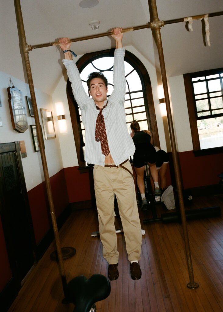 But beneath the tweed and ties, the trip doubled as something else: research. Raw material. Homework for season two of Overcompensating. In the conversation ahead, Skinner teases new love interests for Benny, Grace, and one previously unlucky-in-love character; hints that “no one is doing what they did in season one”; and even reveals that he’s been dropping episode titles on social media (spoiler: one is called “Oops… I Did It Again,” with a soundtrack to match the nostalgic college vibe of season one).