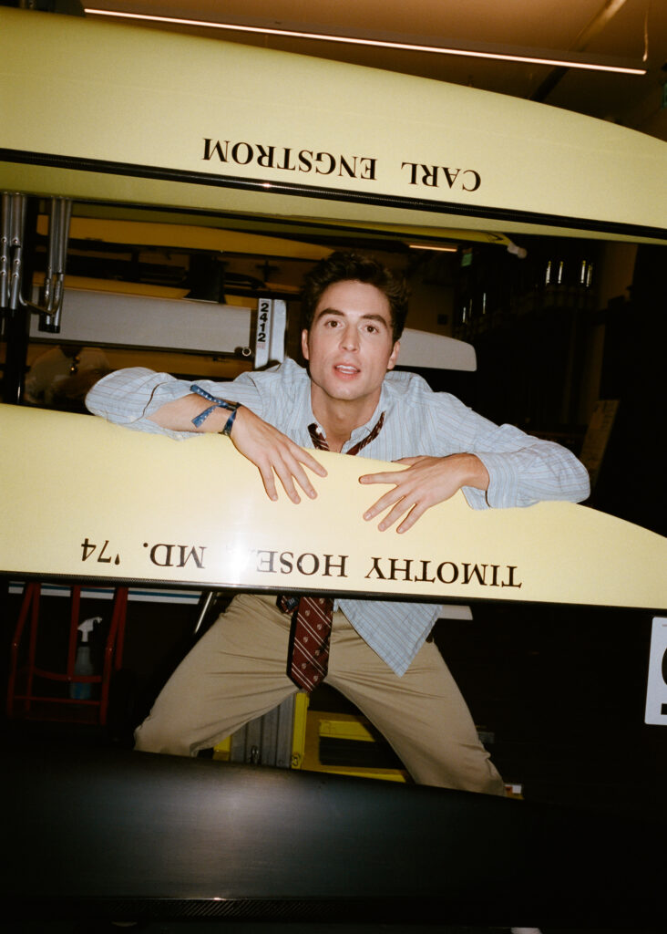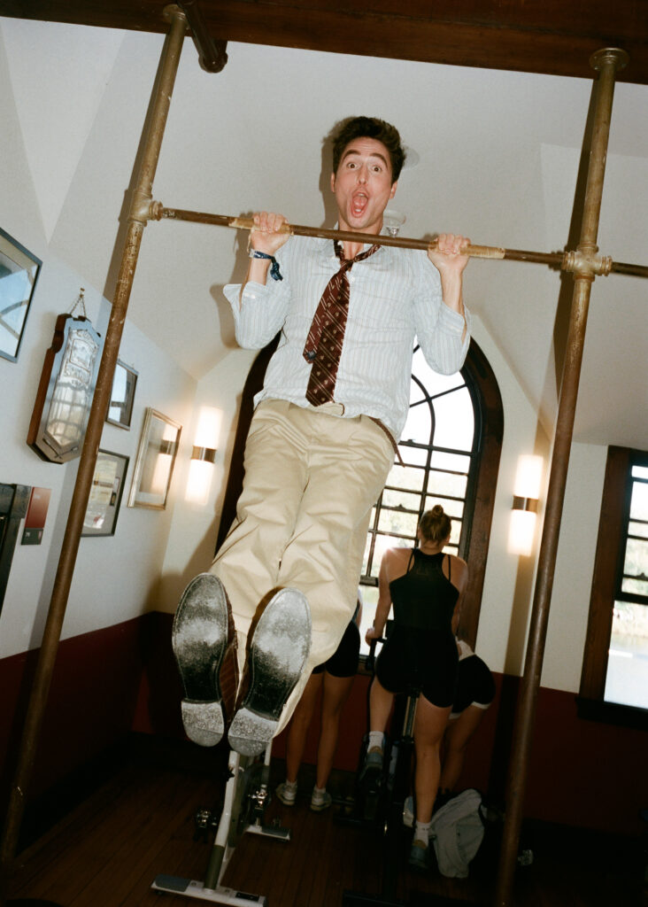 What began as a simple campus visit quickly snowballed. There was a heart-to-heart with MBA students, a 9 A.M. improv session, and a surreal induction into The Harvard Lampoon—the legendary humor institution that has housed everyone from Conan O’Brien to B.J. Novak. For Skinner, who once felt too closeted in college to fully put himself out there, stepping inside the Lampoon felt like, as he puts it, “a nice full-circle moment, because I really restricted myself in college. I didn’t put myself out there. I was still in the closet and scared to be myself in any way.”