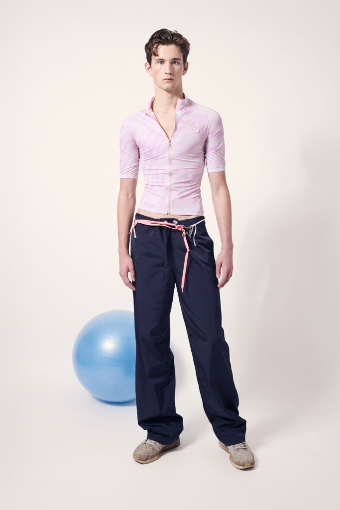 “The starting point is the sensation of textures associated with physical exertion — the warmth of a heated body, sweat on skin, and the quiet satisfaction that follows movement. These feelings are translated into garments that oscillate between athletic exposure and tailored restraint,” Lazoschmidl said in a statement.