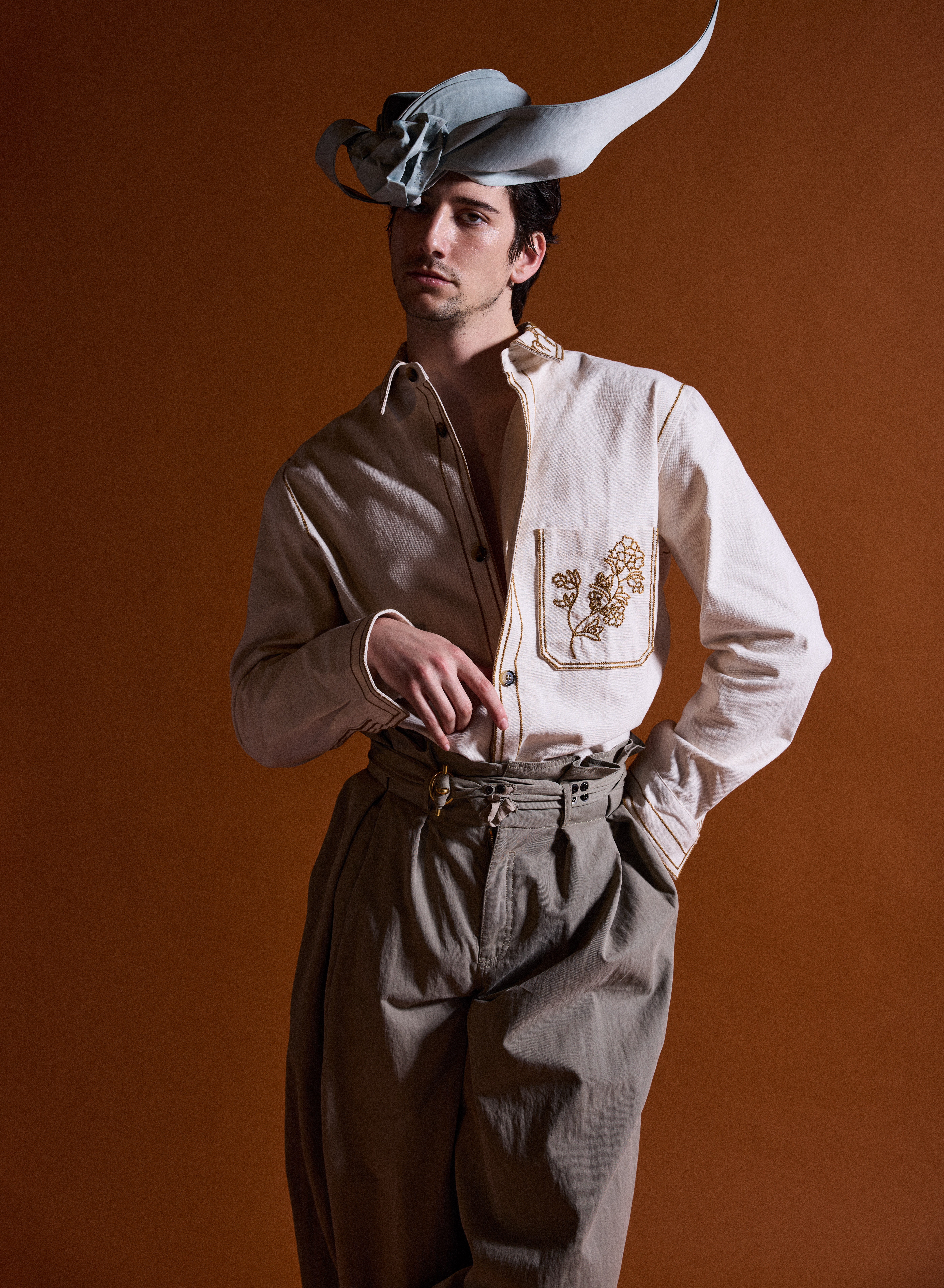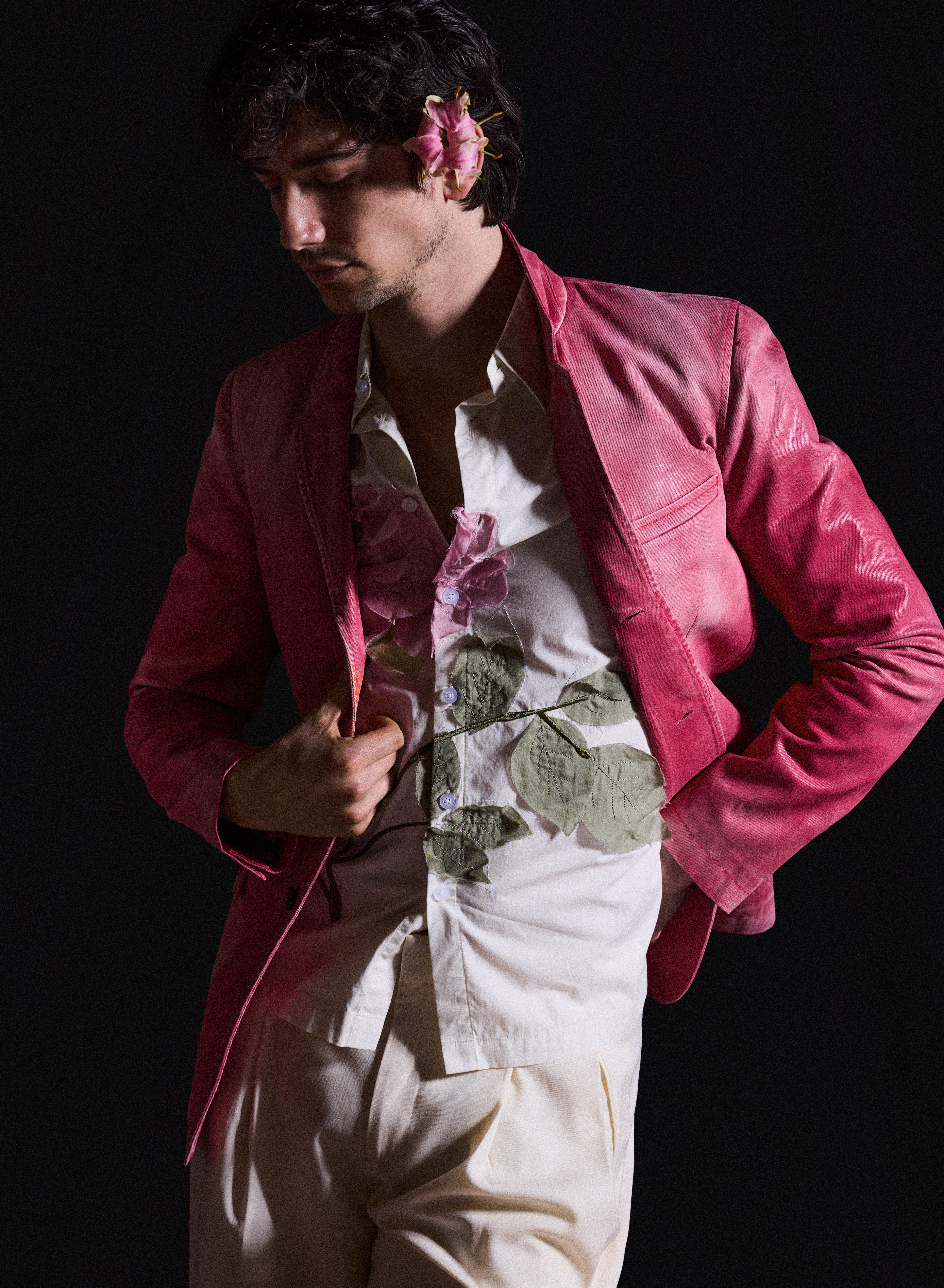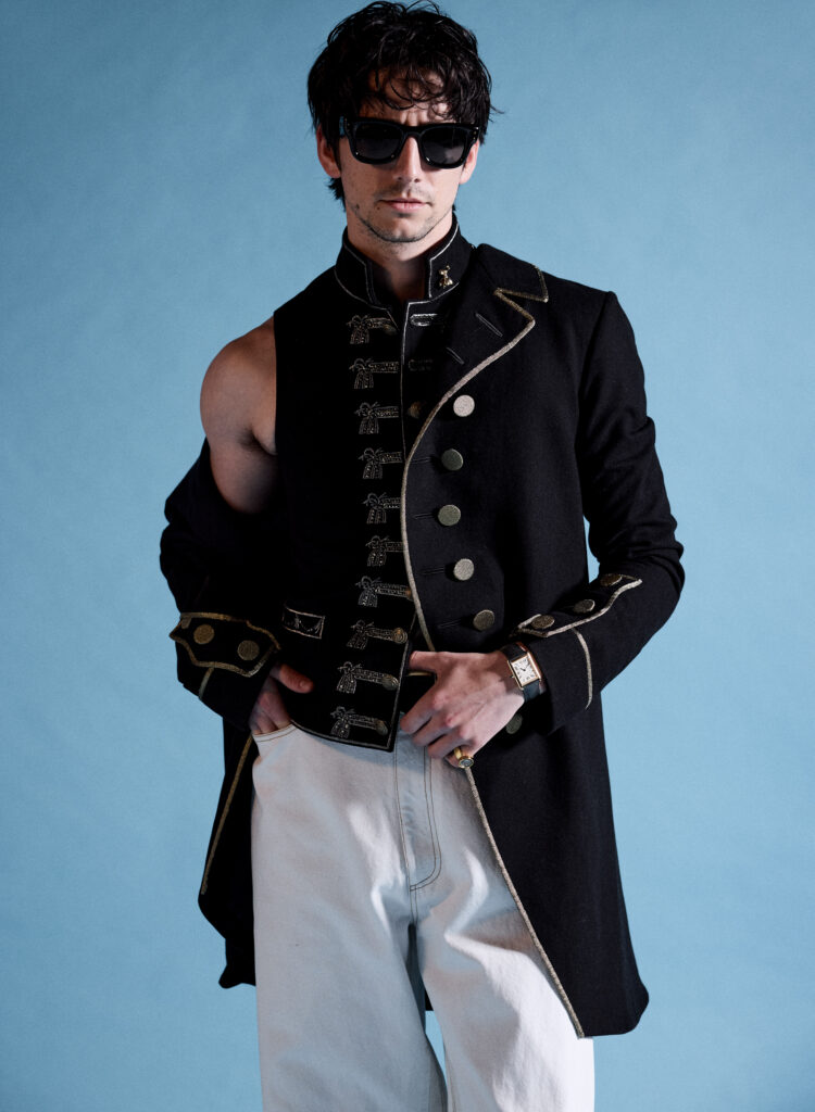 It is quite hard not to see Tangled character Flynn Rider when Milo Manheim enters the room: the height, the shadow of a goatee, the big brown eyes, the confident swagger. When he arrives at his shoot with VMAN, he pulls off a classic cool guy move, casually identifying the fragrance I’m wearing before graciously introducing himself to everyone on set. After years of fans eagerly drawing the comparison between the 25-year-old School Spirits actor and the Tangled leading man, Manheim was officially cast in the live- action remake earlier this year—marking the beginning of the most exciting chapter in his acting career so far.