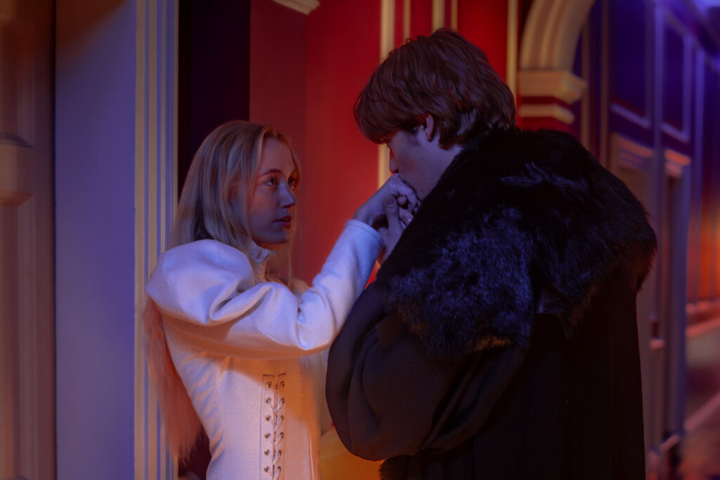 Nicholas Galitzine once again proves that no one commits to playing a beautifully clueless man quite like he does, and 100 Nights of Hero gives him plenty to work with. In the sophomore feature from writer-director Julia Jackman, Galitzine steps into a whimsical fantasy where a melancholic young woman named Cherry (Maika Monroe) is married off to the neglectful prince Jerome (Amir El-Masry) and expected to produce an heir. Jerome, however, has no interest in consummating the marriage, leaving Cherry to shoulder the blame for their inability to conceive. Before departing on an extended trip, he strikes a cruel wager with his scheming friend Manfred (Galitzine), who vows to seduce Cherry to “test” her fidelity. Cherry’s sharp-witted maid, Hero (Emma Corrin), catches wind of the plan and must outmaneuver the dangerously seductive suitor to protect Cherry’s dignity.