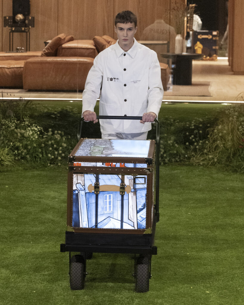 Louis Vuitton Men’s Fall–Winter 2026 collection was designed around the simple premise that clothing should endure. Presented in the garden of the DROPHAUS at the Jardin d’Acclimatation in Paris, the show’s setting established this logic immediately. Designed by Pharrell Williams in collaboration with the architectural firm Not A Hotel, the prefabricated house was conceived as a model for future domestic life.