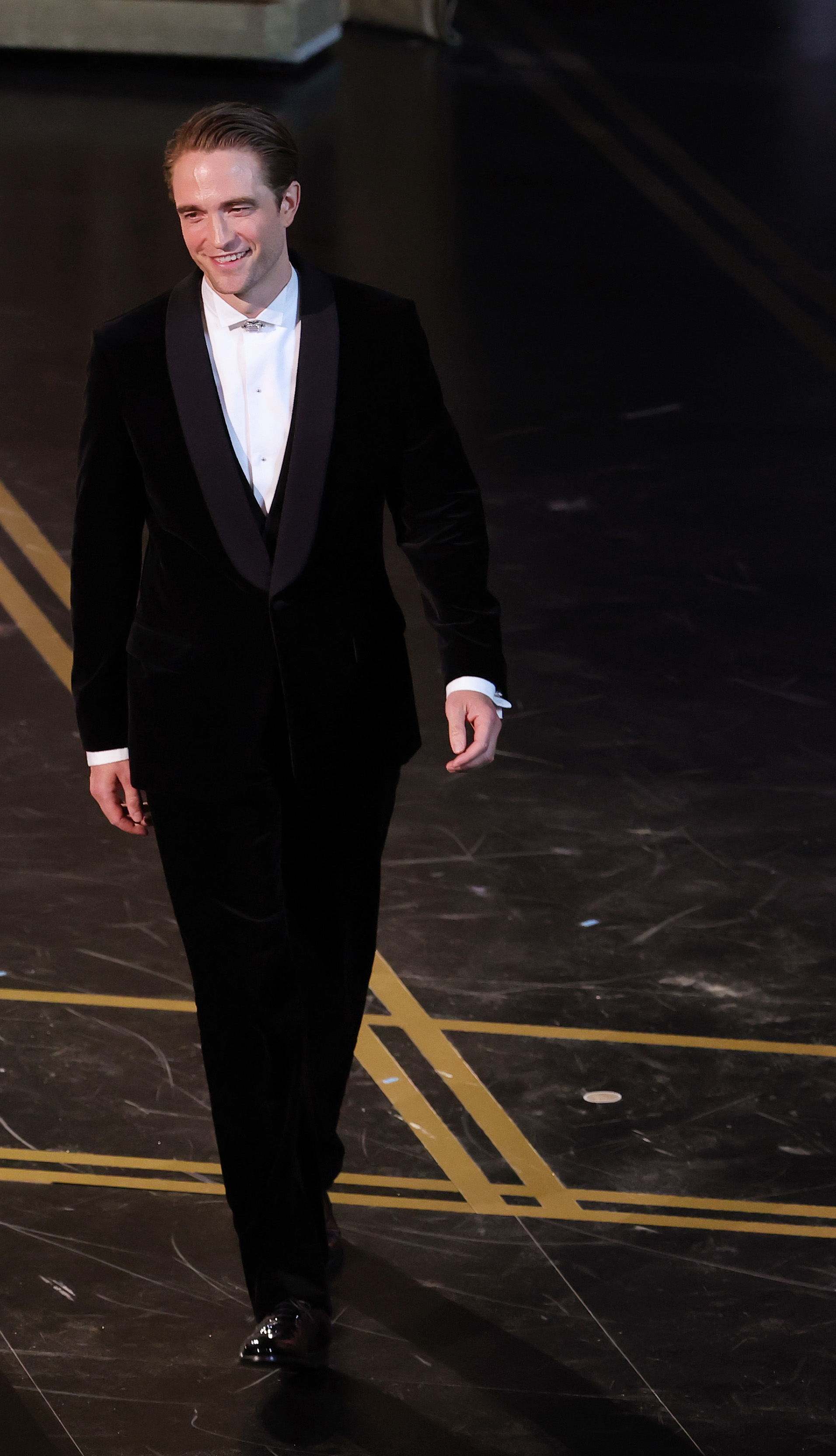 Robert Pattinson wore a Dior black velvet and silk lapel tuxedo with a white cotton shirt and black patent leather derbies. Courtesy of Dior