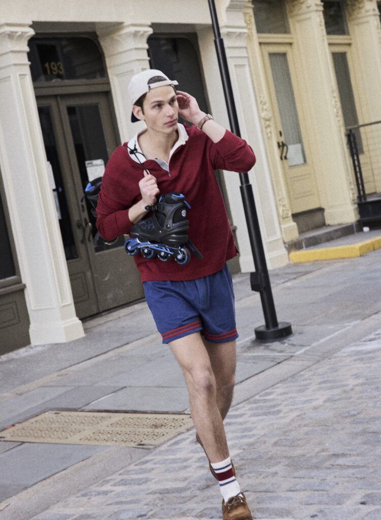 Stripe rugby shirt TOMMY HILFIGER | Lakewood shorts BODE | Hat BENCH | Timex Chronograph 40 mm leather strap watch TIMEX | Suede shoes GIANVITO ROSSI